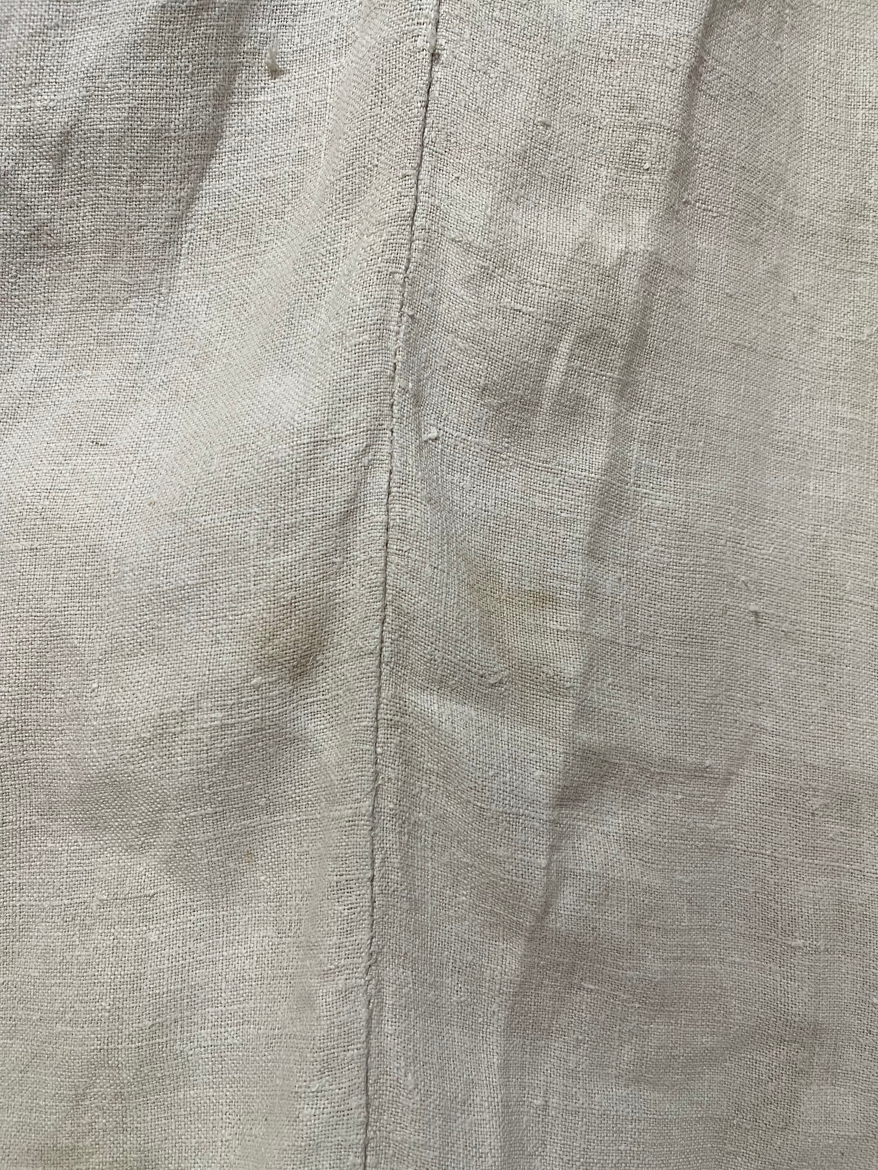 シミや青い点々、擦れ、ほつれ、小さな穴、補修跡などがあります。