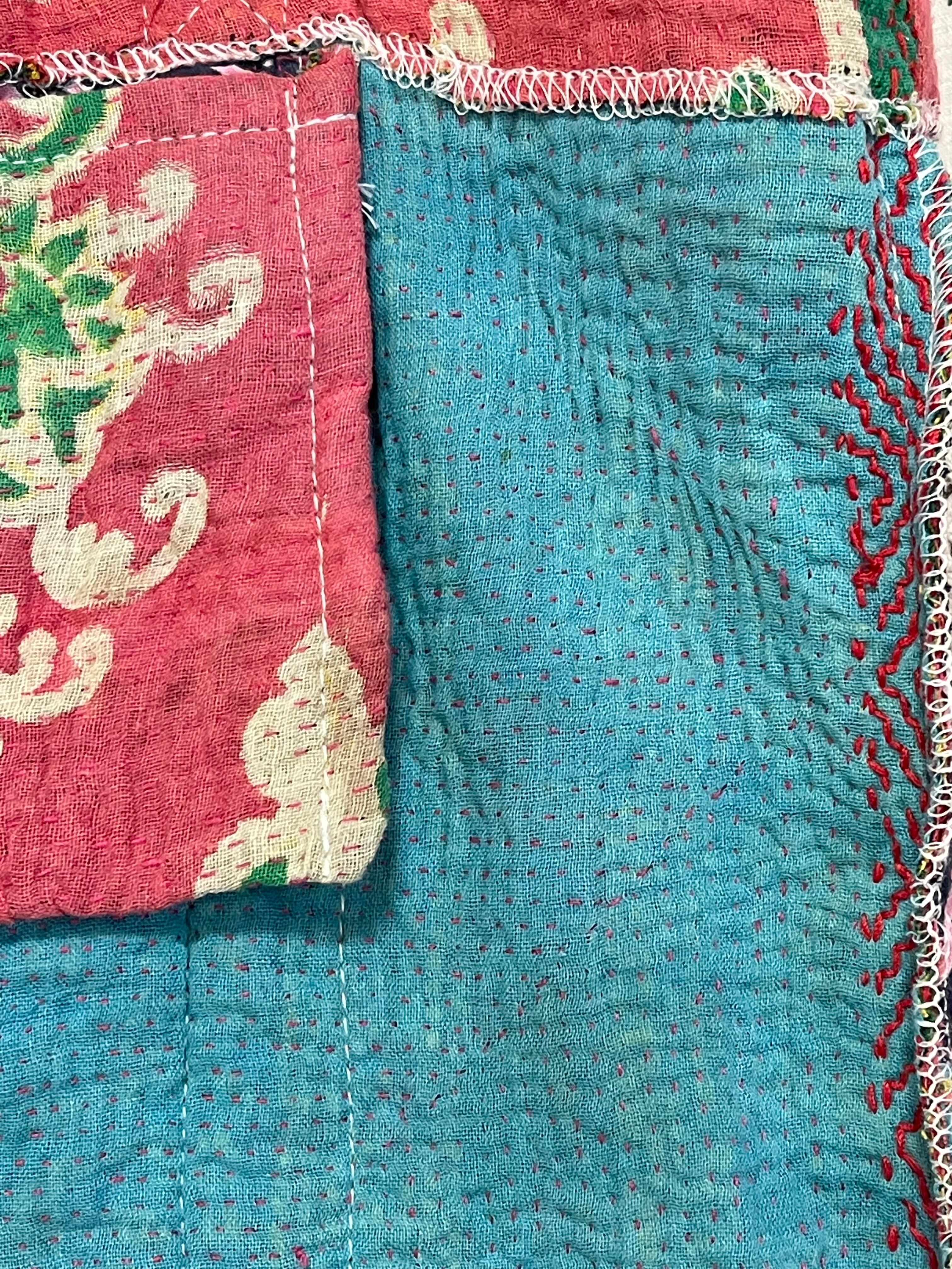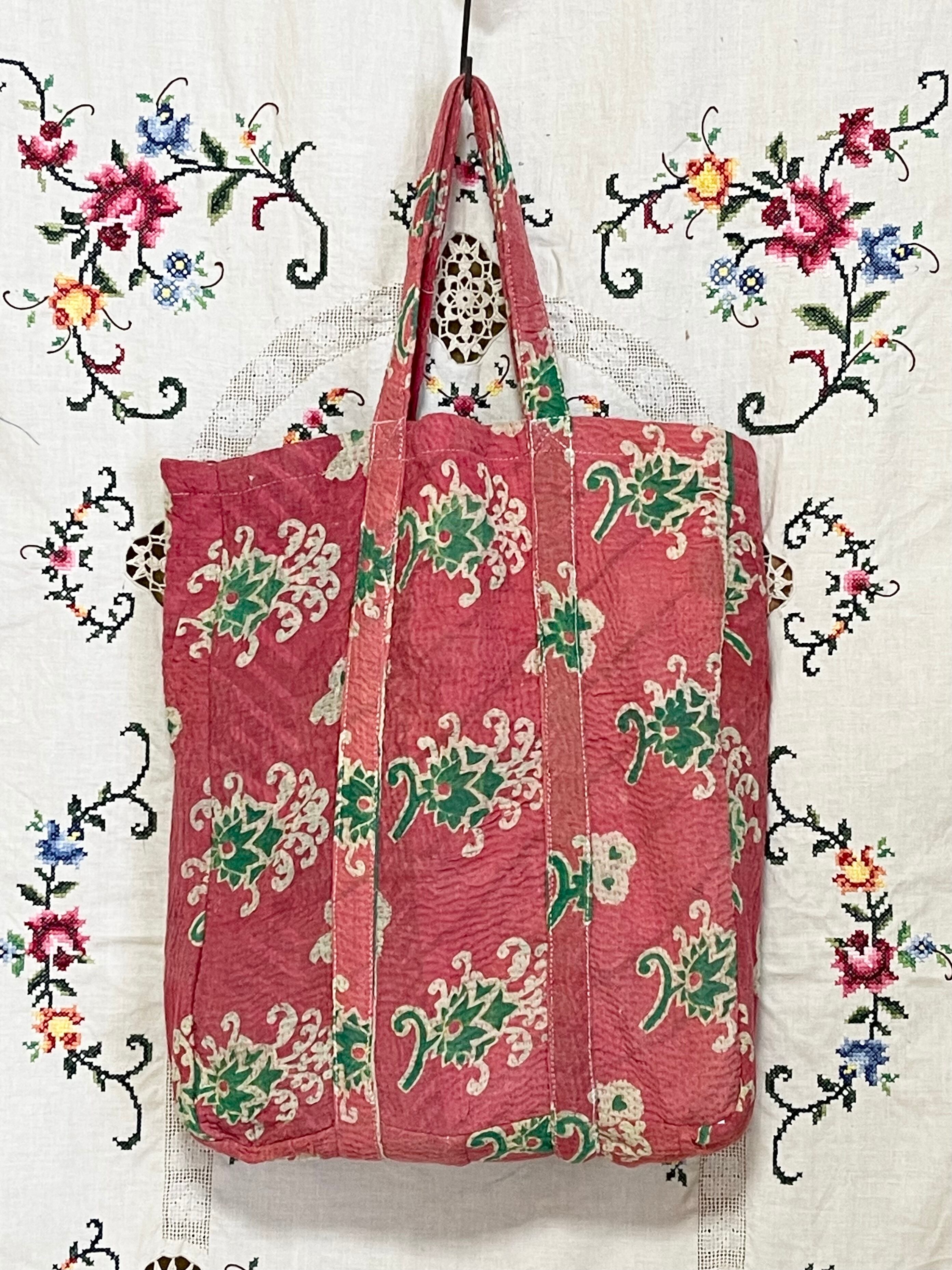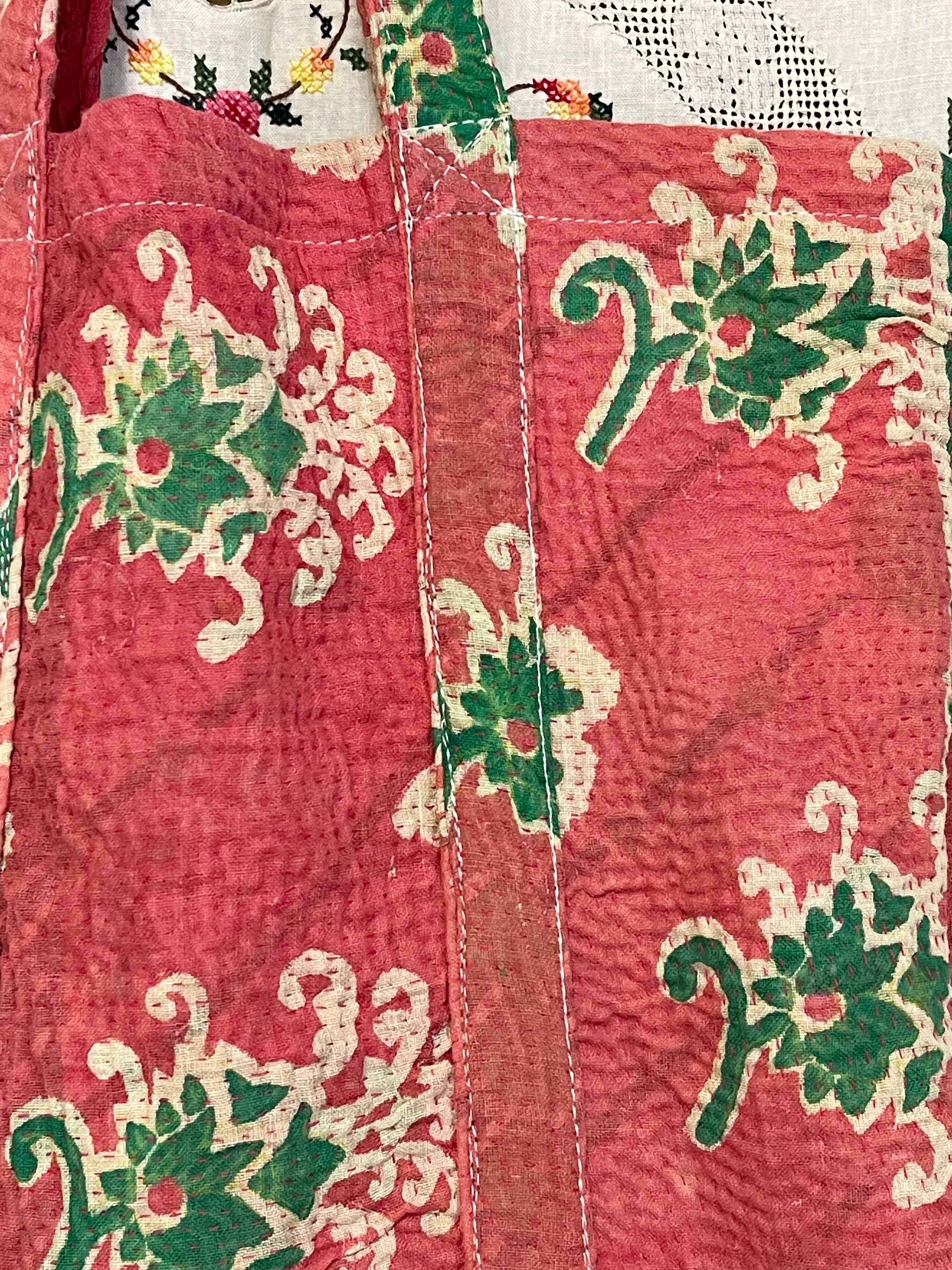 細かい刺し子がとても美しいカンタ刺繍トートバッグです。