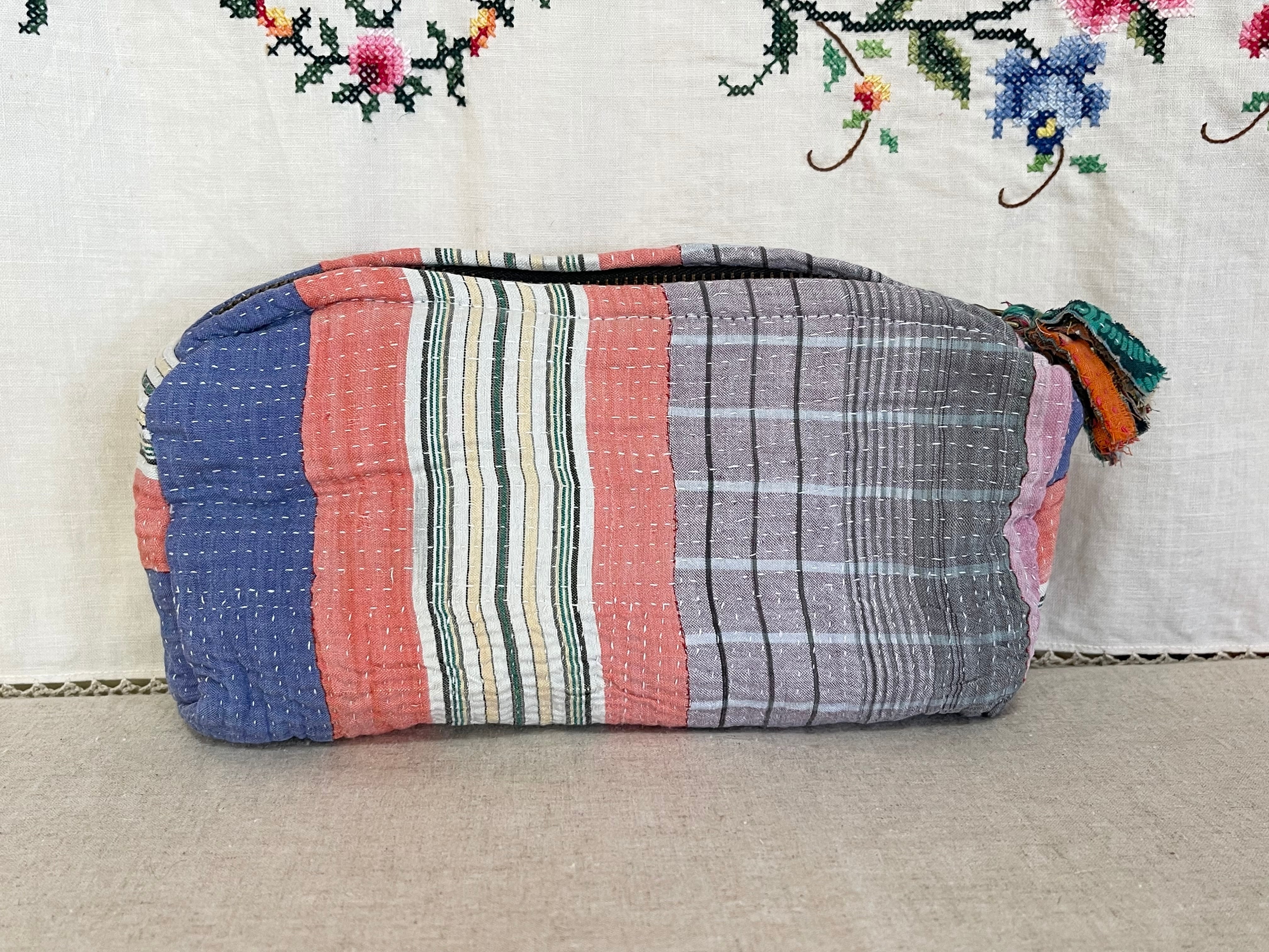 細かい刺し子がとても美しいラリーキルトポーチです。