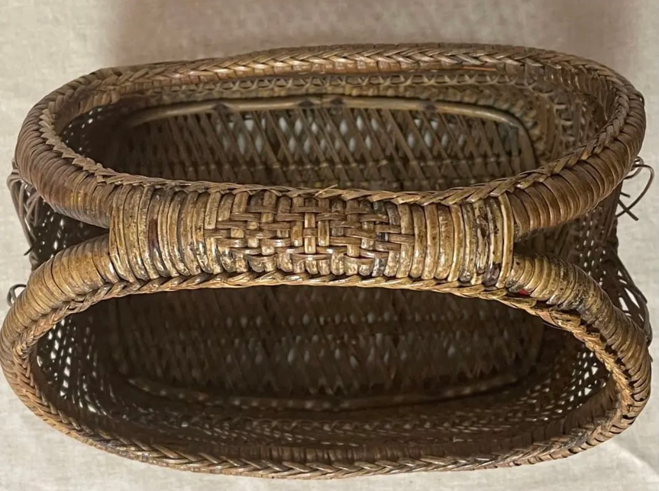 古いため汚れや折れ、網目が抜けた箇所などがありますが、とても味があります。(洗いましたが汚れが残っているのでご了承ください)