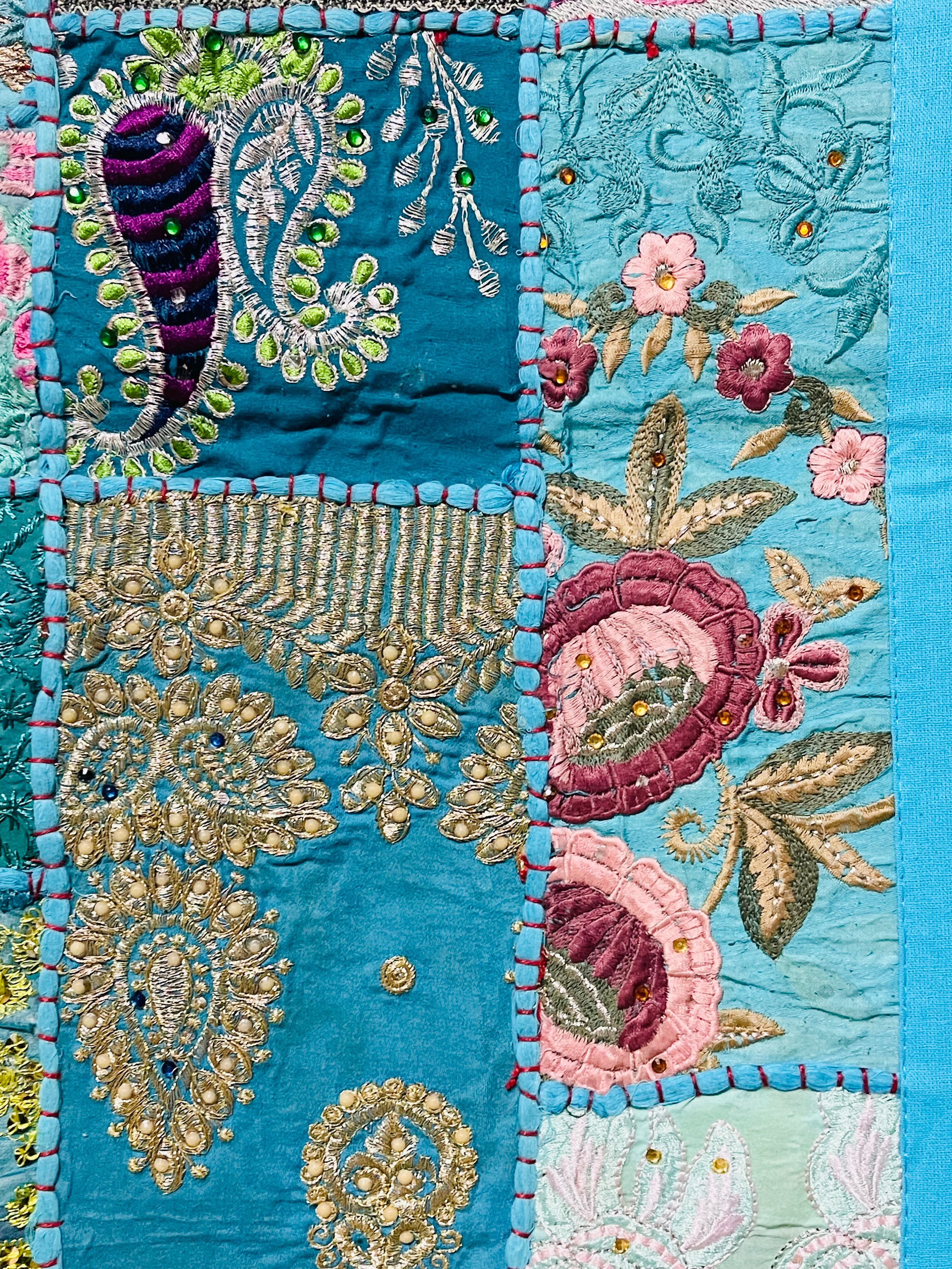ビンテージサリーのパッチワークタペストリー。