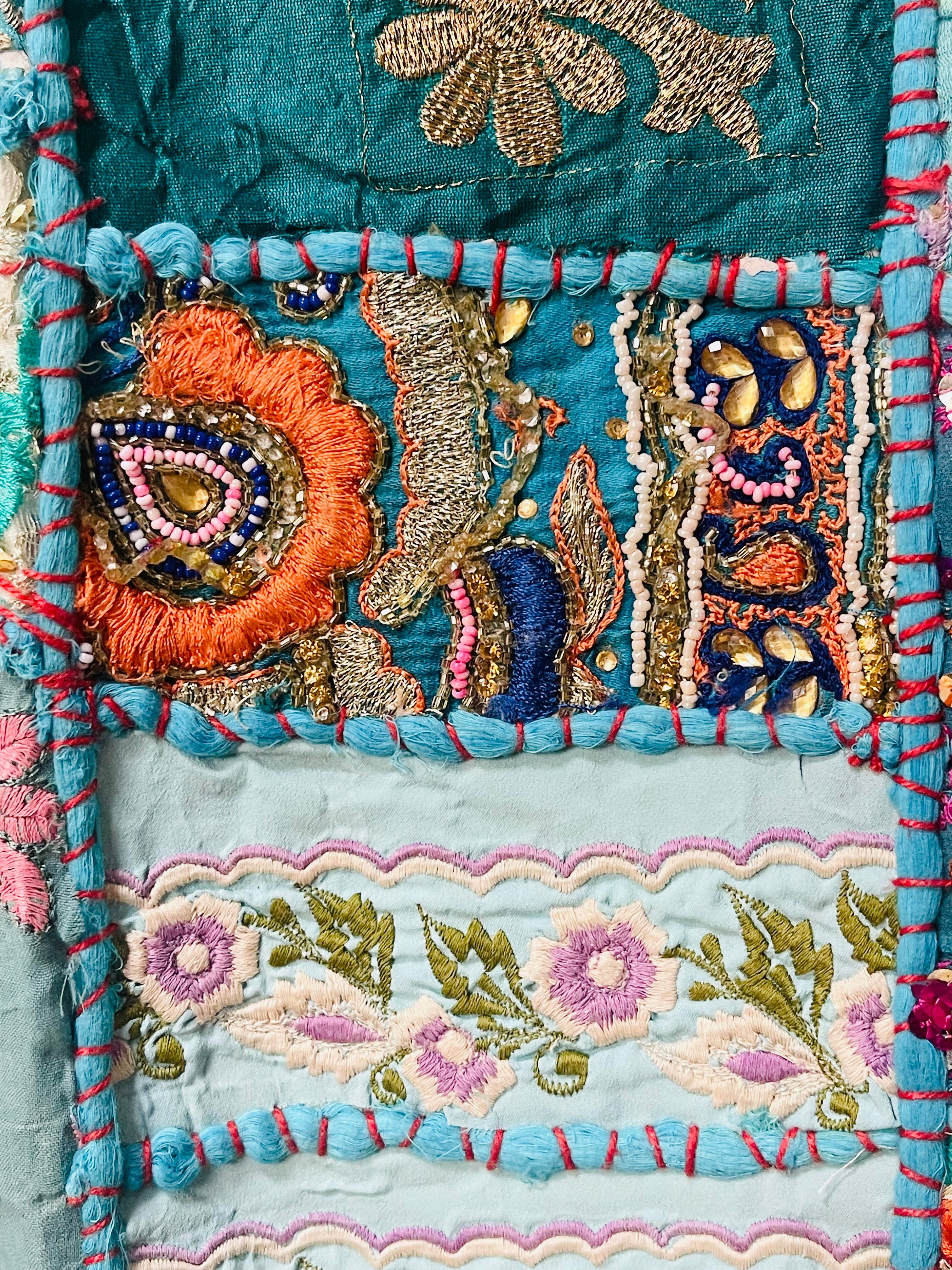 ビンテージサリーのパッチワークタペストリー。