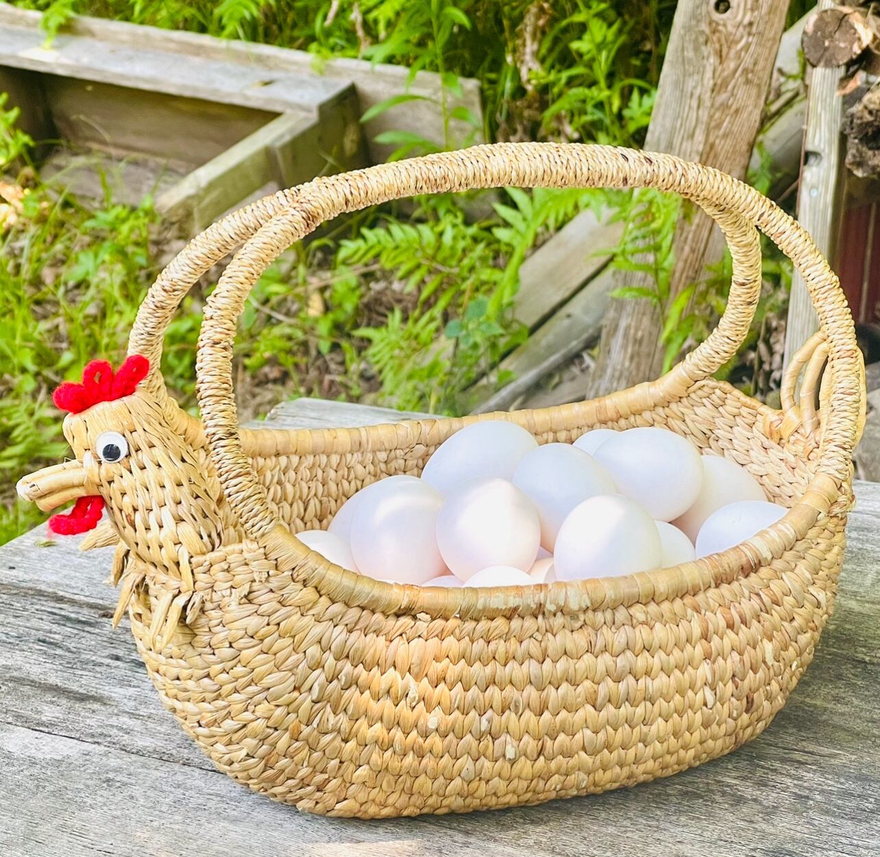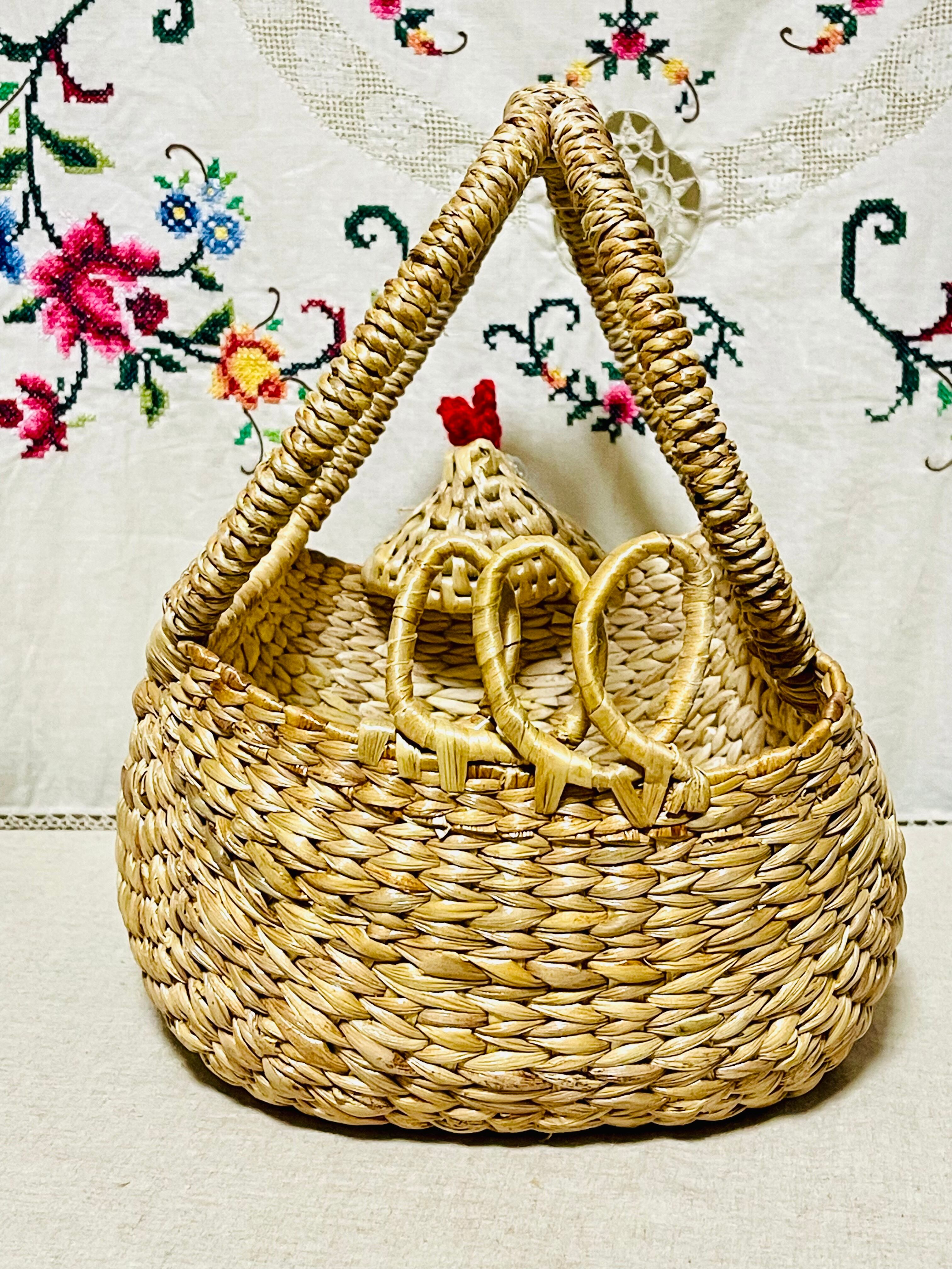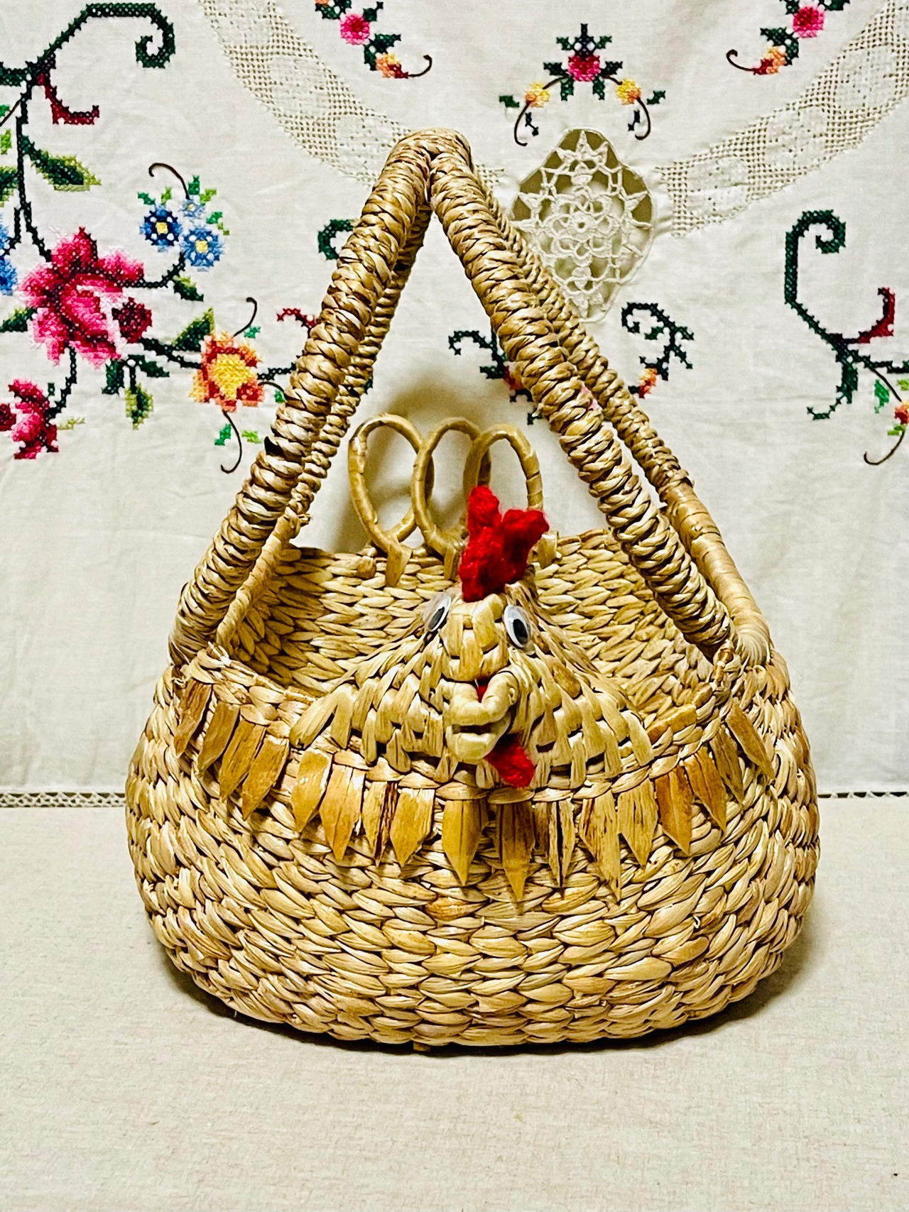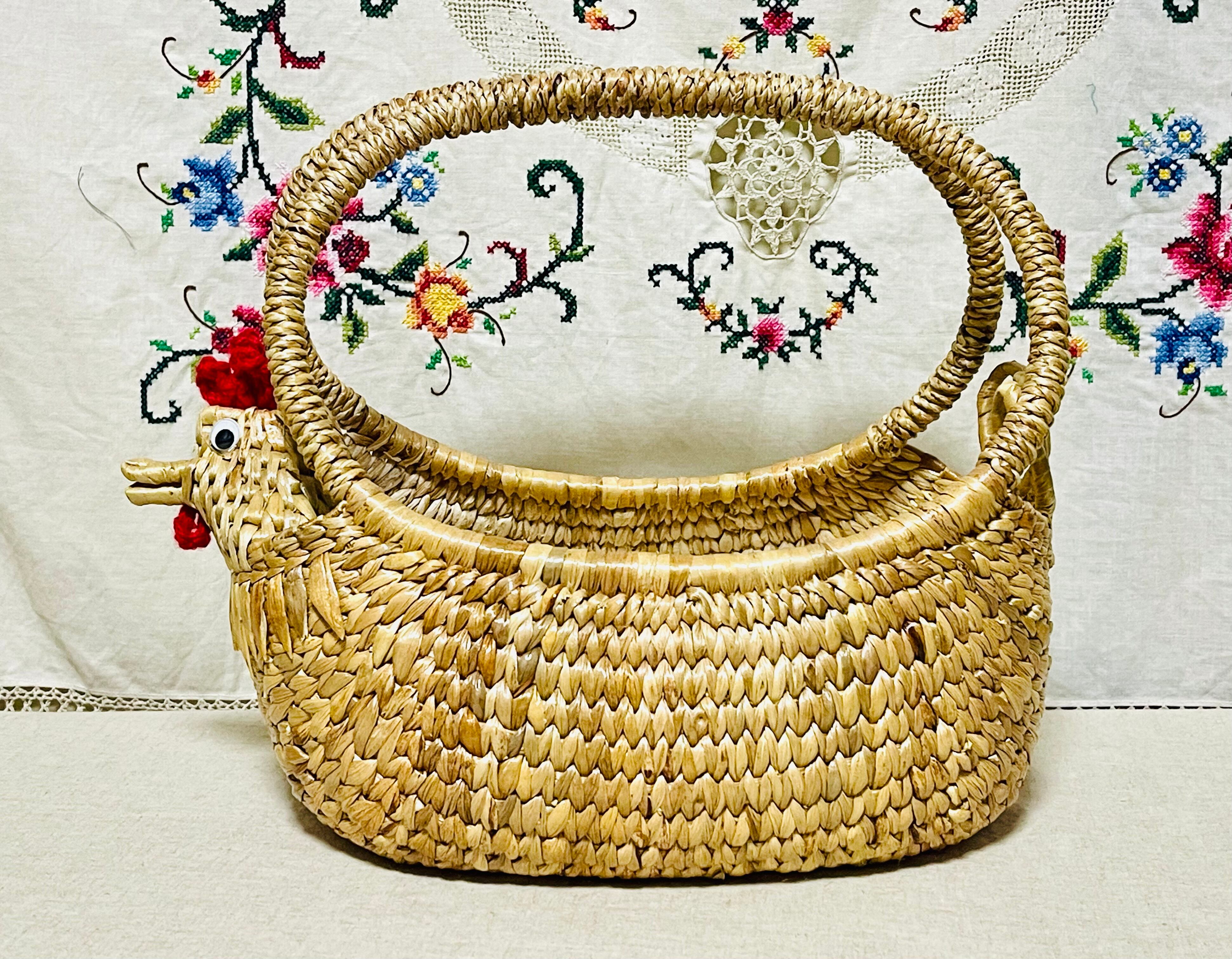 かごの先ににわとりの顔があって、とってもかわいいです!